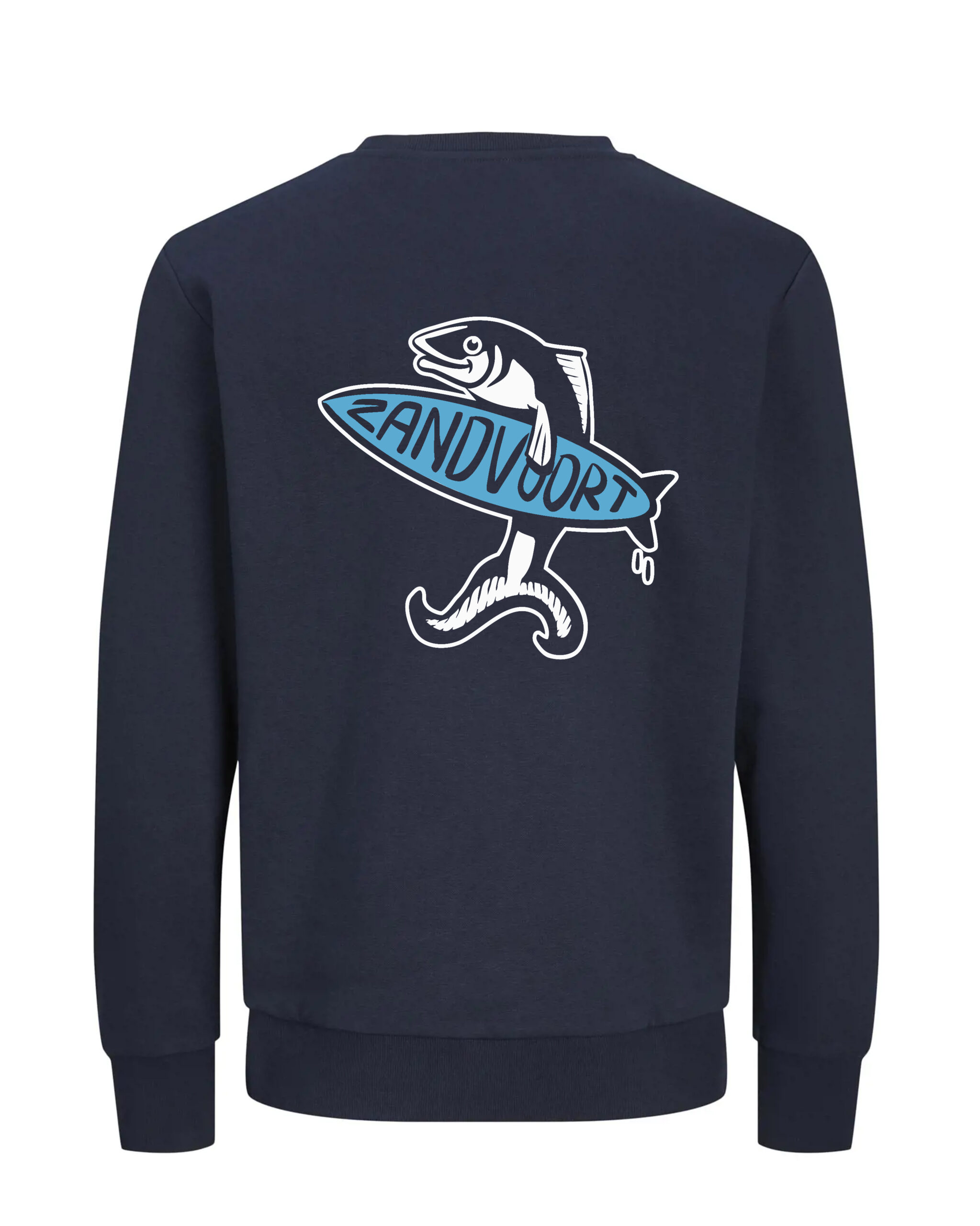 De haring uit het wapen van Zandvoort, vertaald naar een moderne versie met een surfboard. Traditie en surfgevoel in één design.